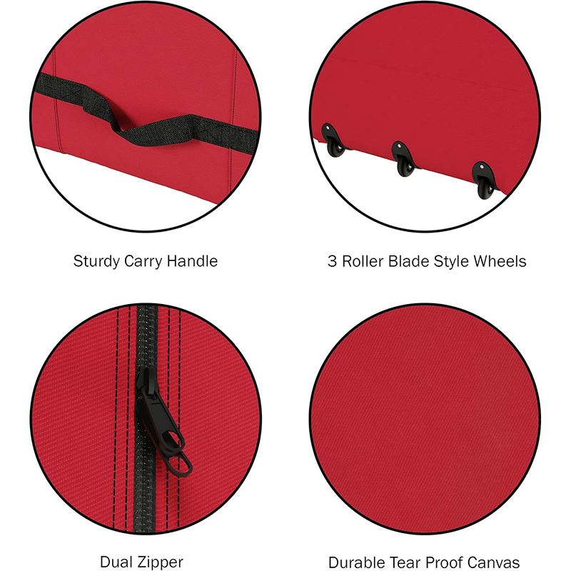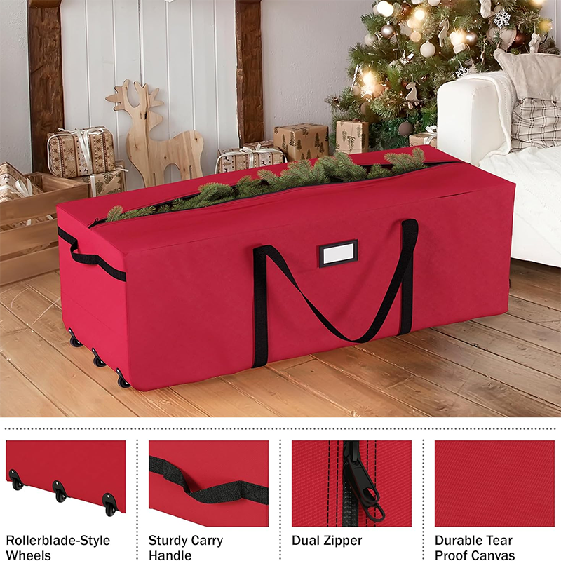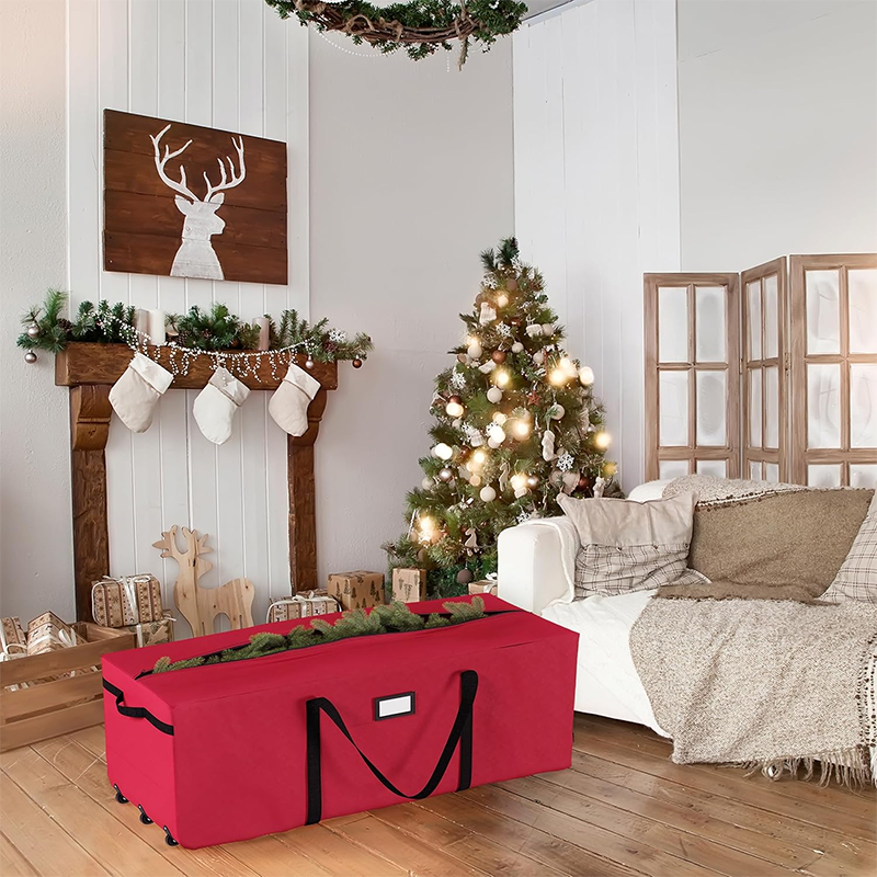 * ROLLING BAG - With three rollerblade-style wheels and sturdy handles for portability, this Christmas storage bag will store your tree away neatly and make for quick set-up next year. You can also slide in your tree's original box for added sturdiness.