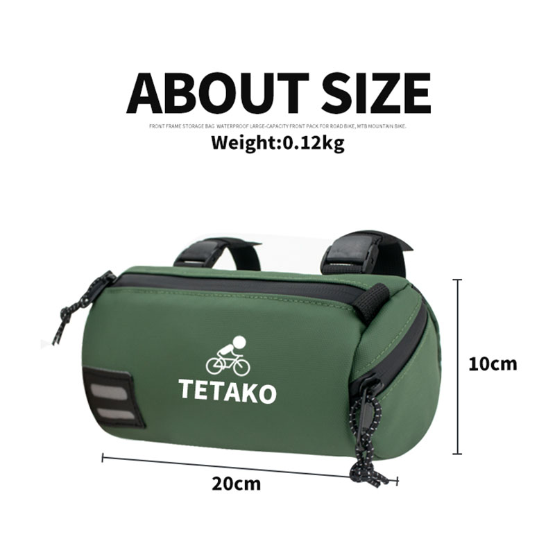 Large Capacity: This bike bag size is 20x10 cm. The capacity can hold more belongings such as cell phones, keys, wallets, energy bars, tissues, sunglasses, power banks, sunscreen, flashlights, repair tools, etc.
